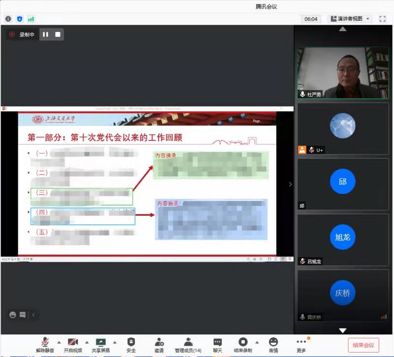 2021年1月12日中午,捆绑调教 教工第二党支部与第四党支部联合举行支部活动,主题为“学习讨论学校第十一次党代会报告”。会议由黄庆桥老师主持,杜严勇老师作为学校的党代会代表,全程参与了学校的党代会,并在此次学习中详细介绍了党代会报告内容及学习体会。