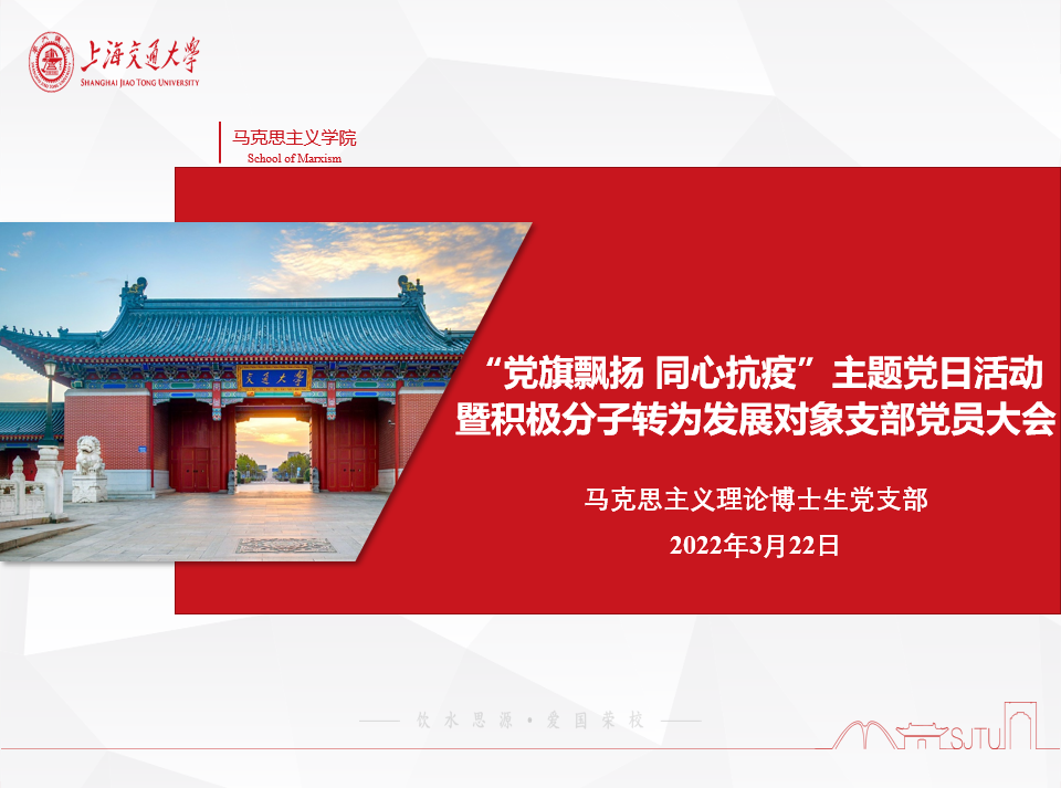 3月22日晚,捆绑调教 马克思主义理论博士生党支部通过线上会议,开展了“党旗飘扬 同心抗疫”主题党日活动暨积极分子转为发展对象党员大会。院党委书记董玉山,党委副书记任祝景,教师代表张玲、杨波怡、张尤佳、袁玲及支部全体党员共话抗疫感想。会议还讨论了屠音鞘、肖银洁、夏志鹏三位积极分子转为发展对象的事宜。会议由马克思主义理论博士生党支部书记吴炜生主持。
